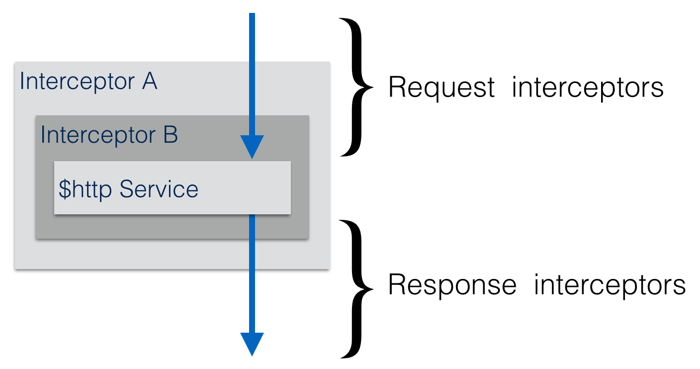 Interceptors are registered with the $httpProvider by adding them to the $httpProvider.interceptors array. Interceptors execute in the order in which they appear in the aforementioned array, during the request phase. For the response phase, they are executed in reverse order. The following image illustrates the process and should help understand the reverse order part.
