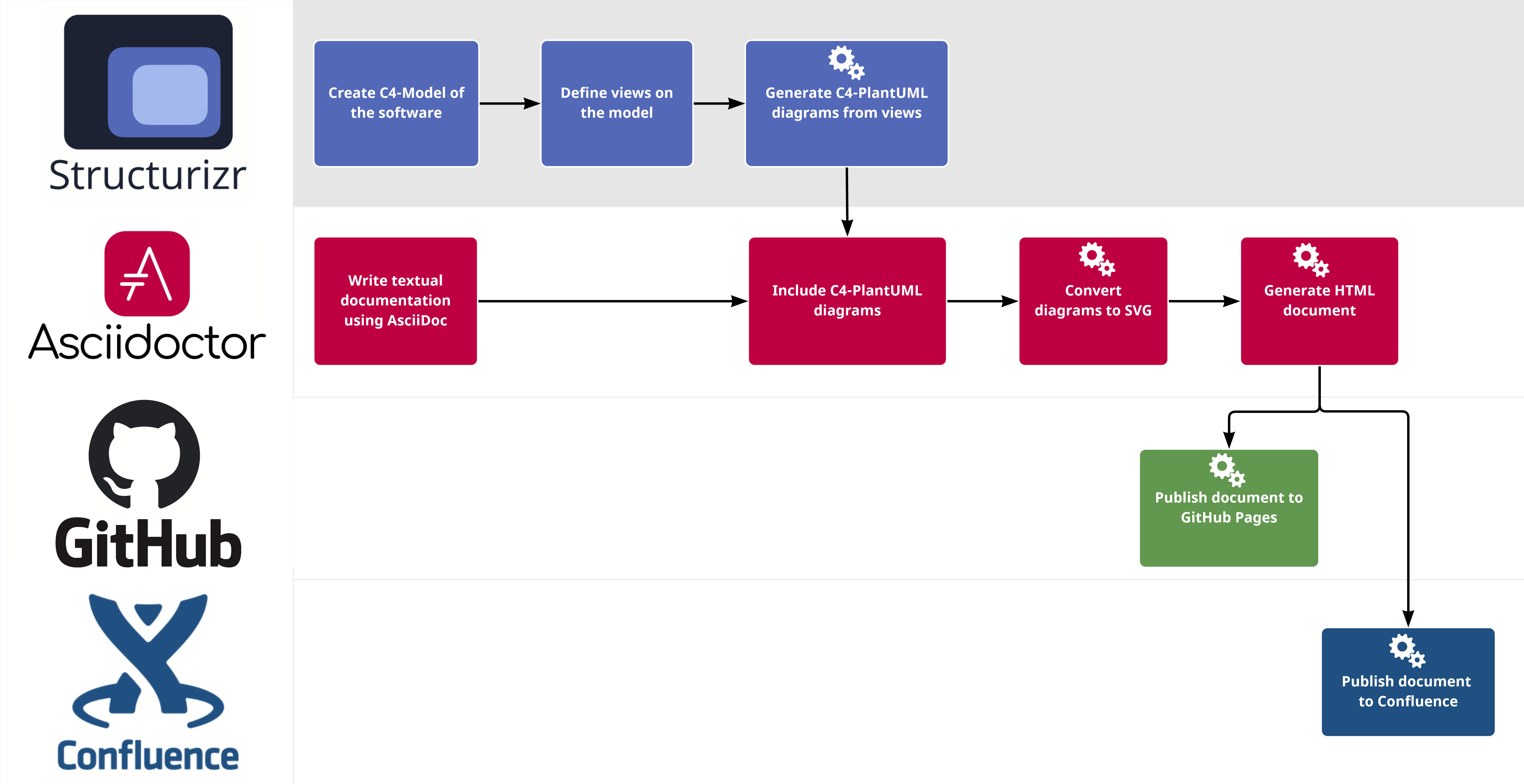 You are reading the third part of this article series about architecture documentation as code. In this article, we will implement the Structurizr-related part of the workflow highlighted in the following figure.