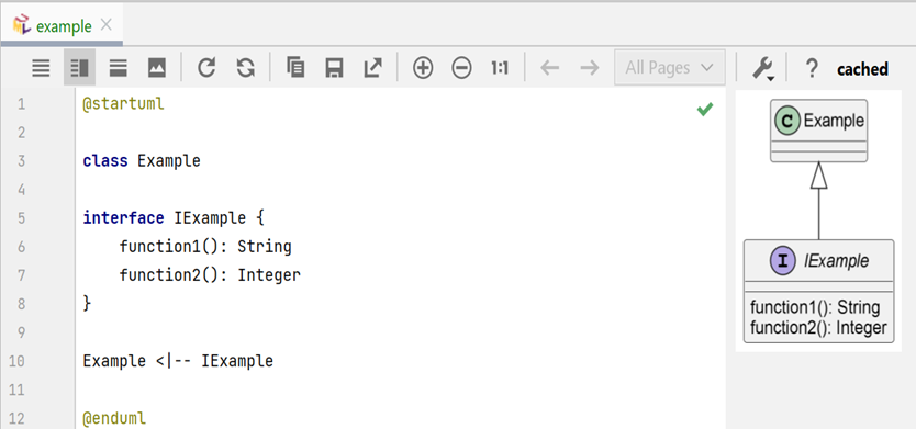 After installing the plugin, we should be able to edit PlantUML diagrams in our IDE and get a preview window showing the rendered diagrams as shown in the following figure.