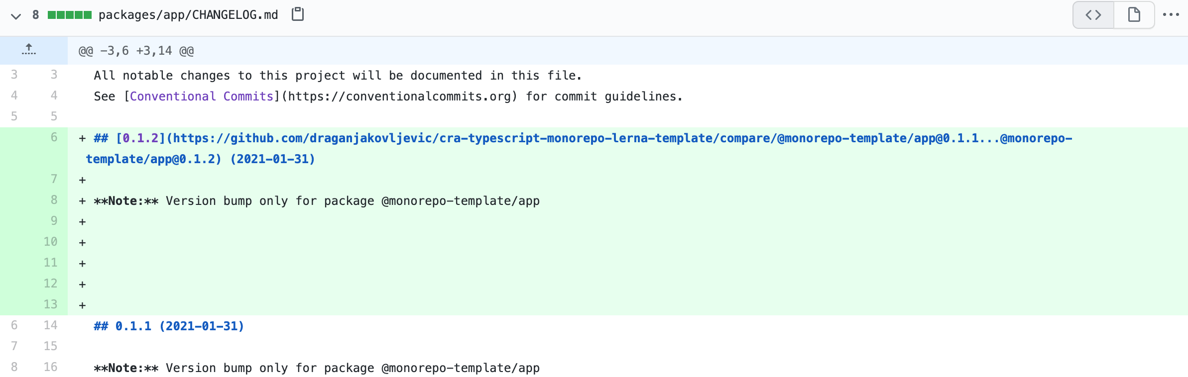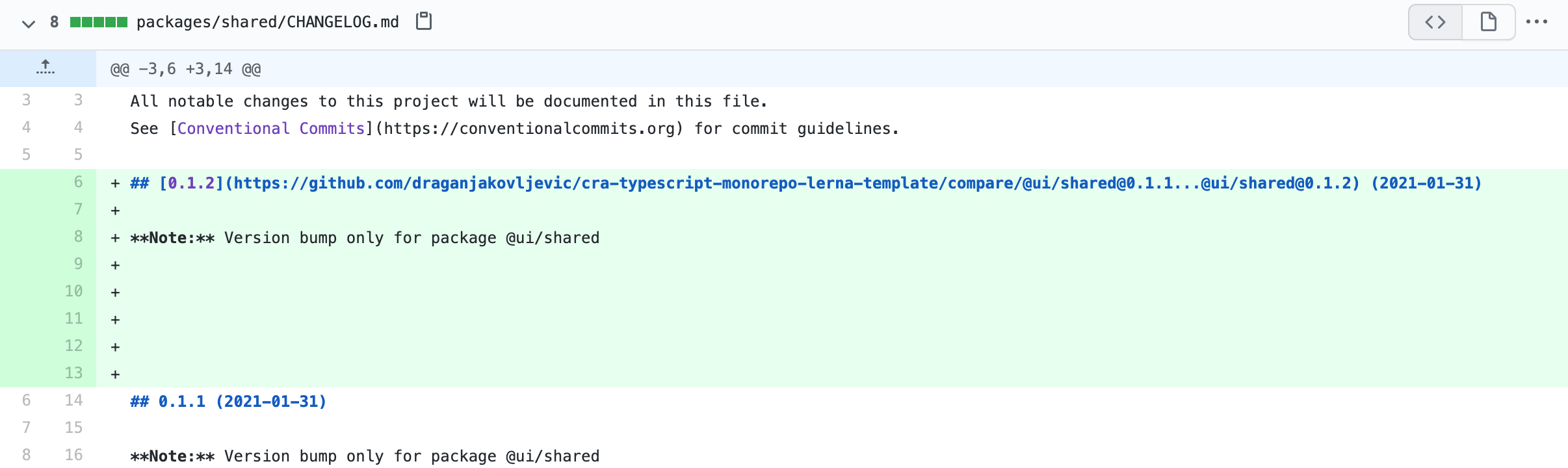 Let’s also have a look at the generated CHANGELOG files: