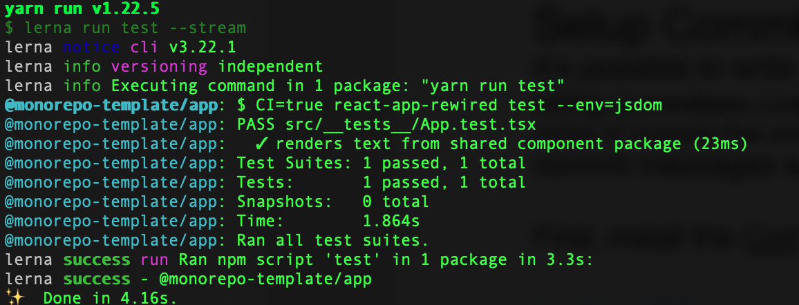 Having that said, let’s start with cloning a cra-typescript-monorepo-template repository. Additionally, we have to install our dependencies via yarn command.