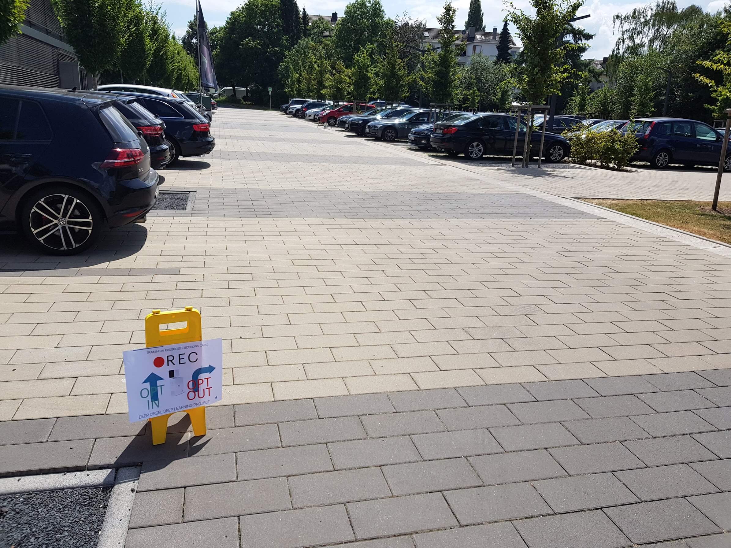 As training data, we used the same kind of pictures that we used for the HOG Detector. For the AWS Deeplens, we limited ourselves to static photos of our company cars and did not take any additional videos of passing vehicles.