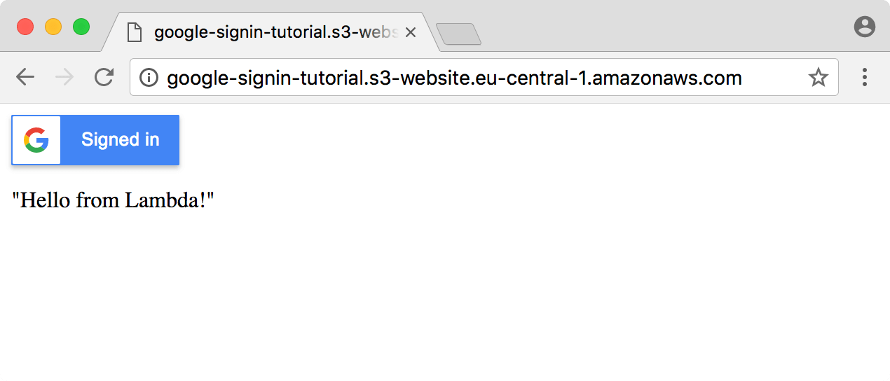 If you now reload your sign-in page, you should see the message “Hello from Lambda!”.