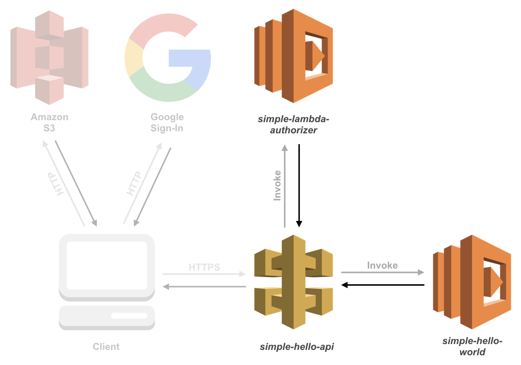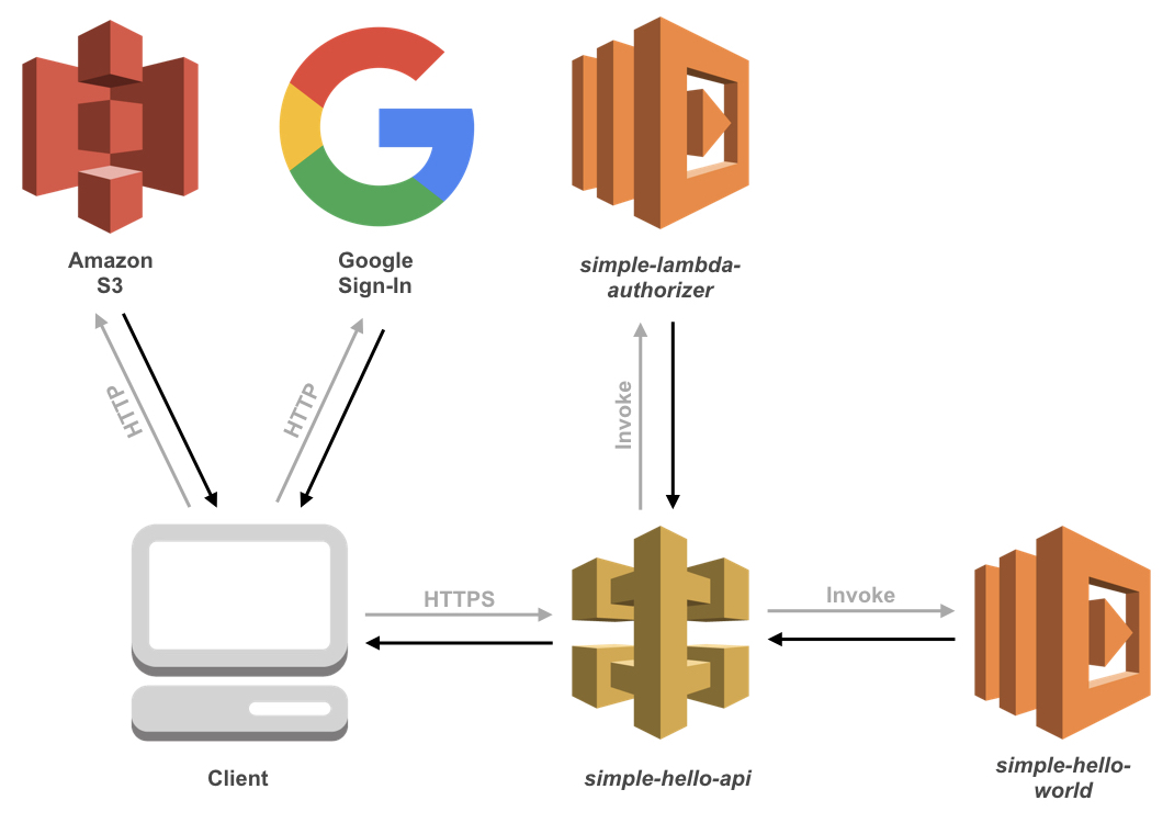 In this tutorial, we will give you a basic understanding of how an AWS Lambda authorizer works and how you can pass information from it to an Amazon API Gateway and other Lambda functions. To authorize users, we use a federated login, namely Google Sign-in, to produce a small full-working example. If you finish the tutorial, your static Google Sign-in page will display a personal greeting for the signed-in user by making an HTTP call to your API. The diagram provides an overview of all services you will build and use throughout this tutorial.