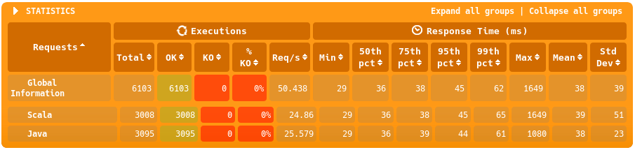 Next, we implement the actual handler functions in both Scala and Java. They just return a http 200 response and don’t do any processing to see the actual impact of the language, rather than from some any arbitrary computations.