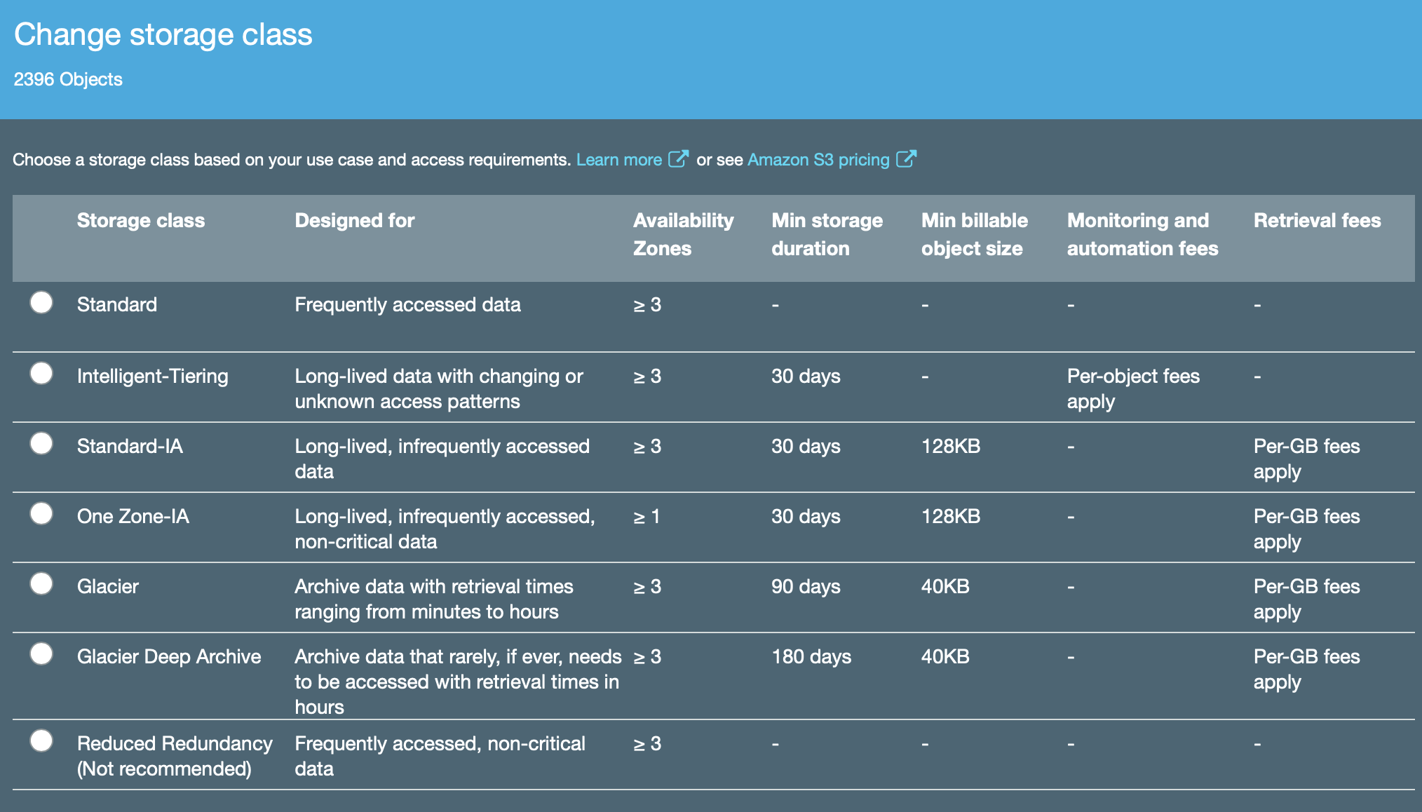 If you are working [with data] on the AWS cloud, you should keep an eye on the cost of your actions in order not to have an unpleasant surprise. Typically you rather save money with AWS in comparison to a local setup, but you should be aware of the cost drivers and use the AWS Cost Explorer and the AWS SageMaker pricing tables . Depending on the size and frequency of the access to your ML data you might want to change the storage class of your S3 bucket or activate S3 Intelligent-Tiering. Price comparisons can be found here .