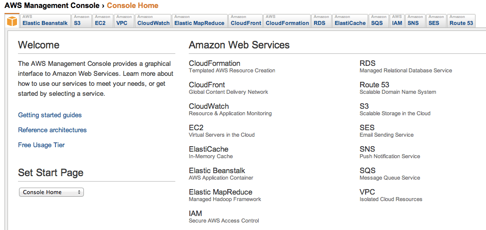 Last but not least I want to shortly introduce Amazon Web Services which is the cloud platform of most of the mentioned solutions. Amazon has a lot of cloud service that you can use in software projects. The AWS Management Console (screenshot) is the central management application of all Amazon cloud service and gives you access to enterprise-level infrastructure services.