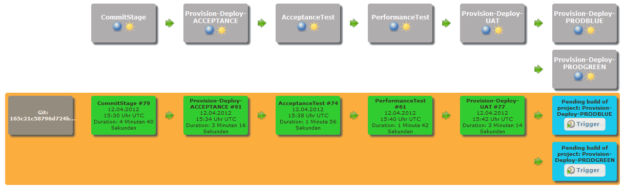 The build pipeline view in Jenkins demonstrates the current execution status and possible errors in the pipeline.