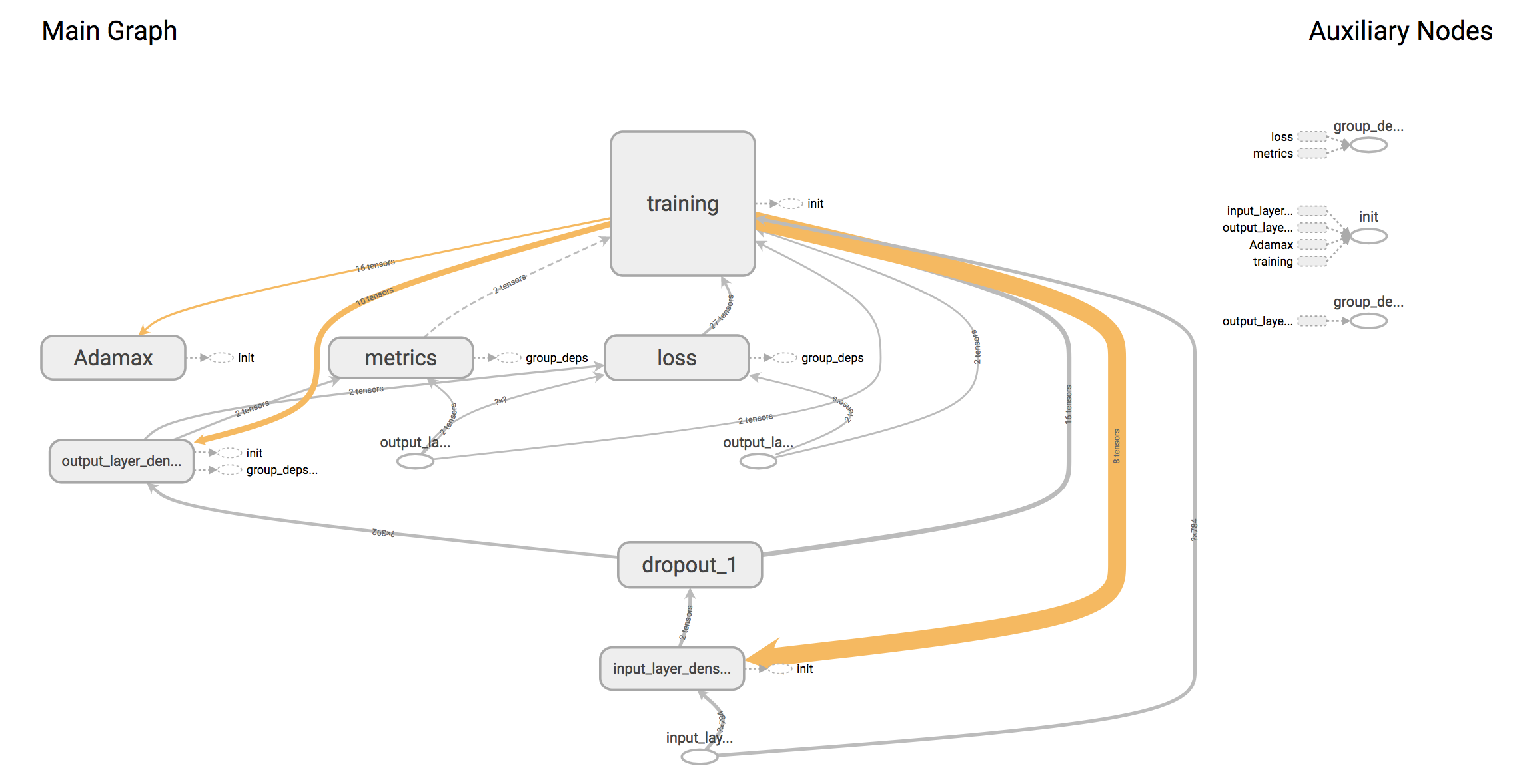 TensorFlow and Keras are such deep learning APIs. TensorFlow has been developed by Google Brain and has been written in Python and C++. Right now, it is one of the most often used open-source libraries for machine learning. Keras builds on top of it and works specifically with neural nets. Same as TensorFlow, it is open-source and has been written in Python. There are several other libraries that can be used as backend with Keras, e.g. Theano and CNTK. TensorFlow is based on the concept of data flow graphs, meaning that every neural net can be seen as a form of mathematical operation in nodes and multi-dimensional data objects, the so called tensors, as edges. With TensorFlow we can use the integrated TensorBoard. TensorBoard is a collection of visualisation tools, that makes it easy to analyse processes, potential errors and optimize neural nets.