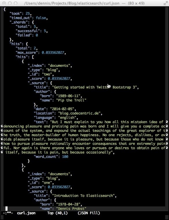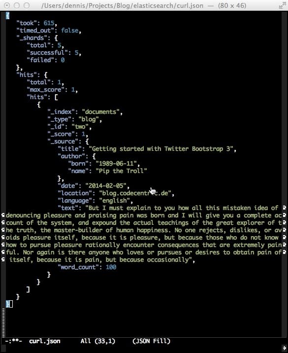 $ curl -XGET "http://localhost:9200/documents/blog/one"