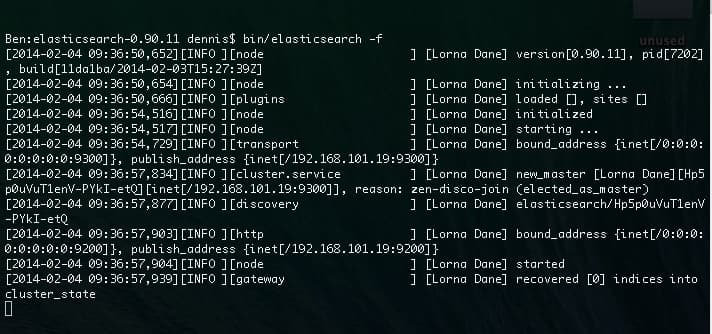 You can see in the output that Elasticsearch started, that it assigned the node a random name, and that the node started a cluster and elected itself as master. The node is publishing to HTTP port 9200 (default). We use this port to interact with the cluster. Now you can