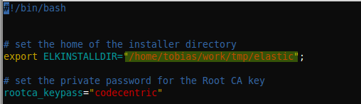 Now we clone the elastic-project from https://github.com/tobiasschaber/elastic , change into the elastic-directory and modify the file “prepare-ssl.sh”. We need to adjust the path from “ELKINSTALLDIR” and let it point to the elastic directory we just cloned: