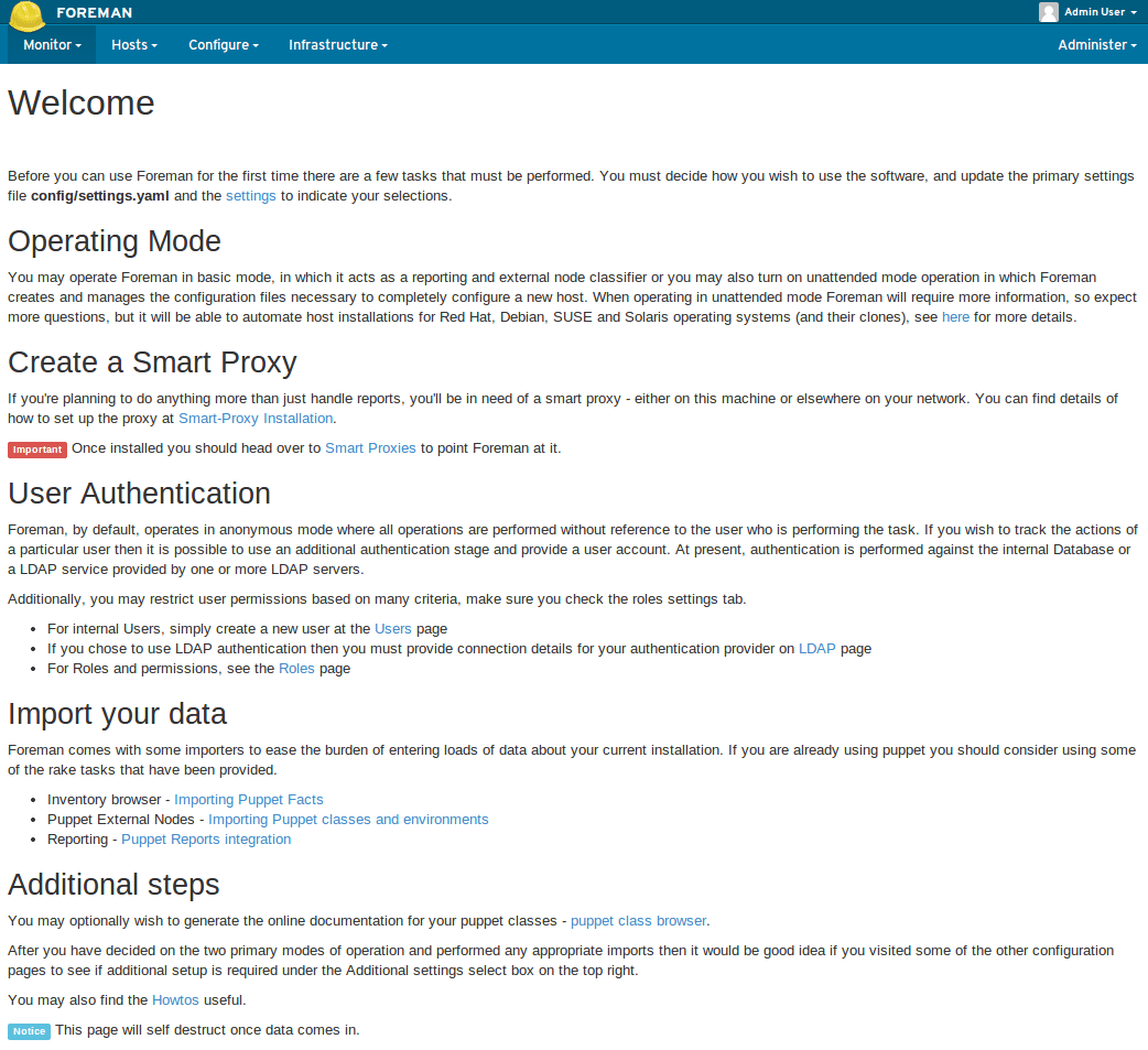 Now we have a Foreman-Server, fully installed and configured with DHCP-, DNS-, TFTP- and PXE-Services, ready to use.