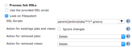 The seed-job will create the jobs based on your DSL-Scripts. You can use this Tutorial , which describes the creation of the seed-job. But instead of using a provided script, we used the “Look on Filesystem”-option with a regular expression to use our scripts from our SCM.