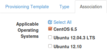 - Click on the entry, go to the tab “Association” and check the box at “CentOS 6.5”.