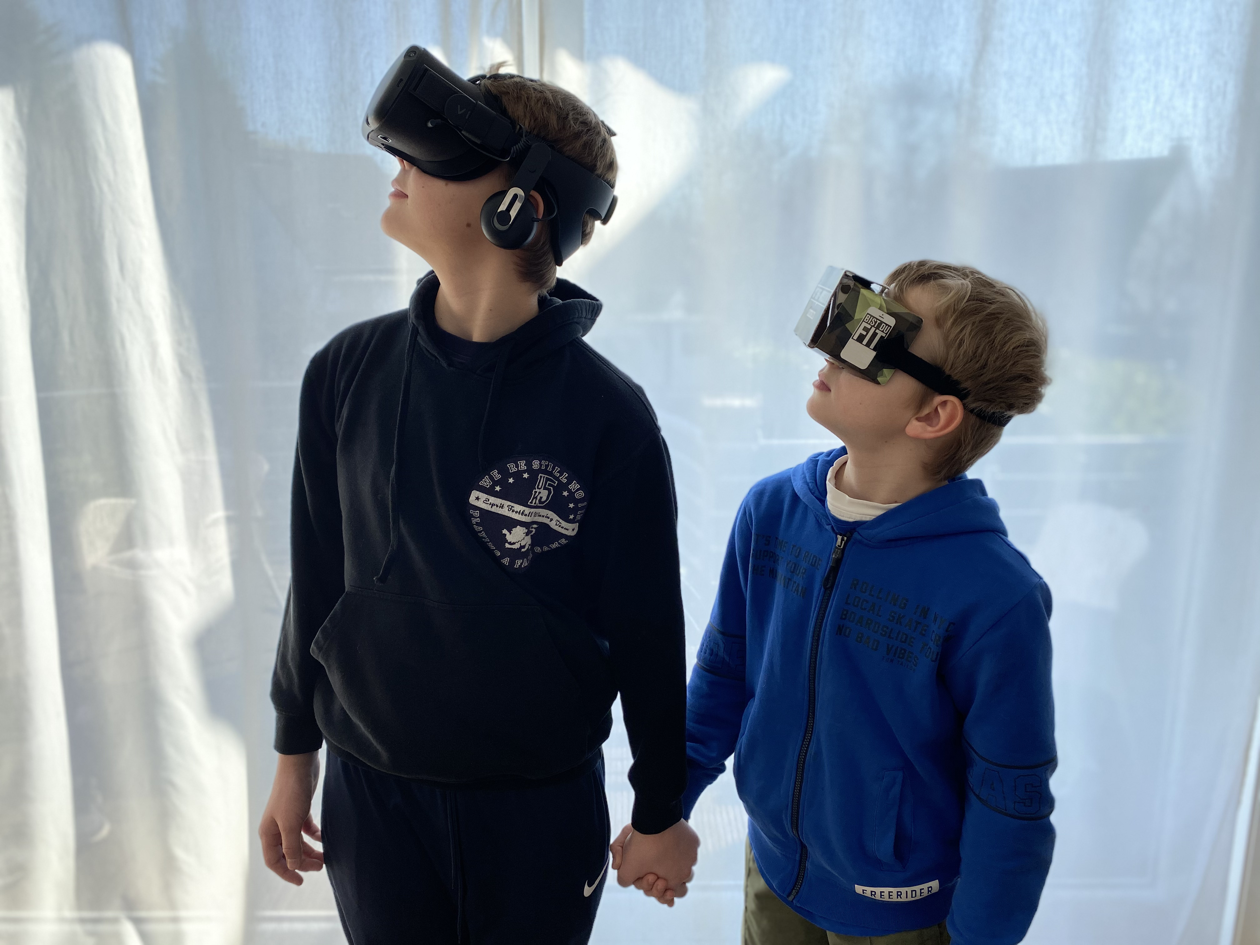 If VR headsets are combined with cardboards in the Virtual Interaction Room, our experience could “pair up” every cardboard user with one “companion” wearing a full-fledged VR headset. So the limited interaction capabilities of the cardboard could be taken over by the companion (e.g. navigating through the scene, interacting with elements, creating annotations) whereas the cardboard user could still see, hear and speak in an immersed manner but relies on their “buddy” for the rest.