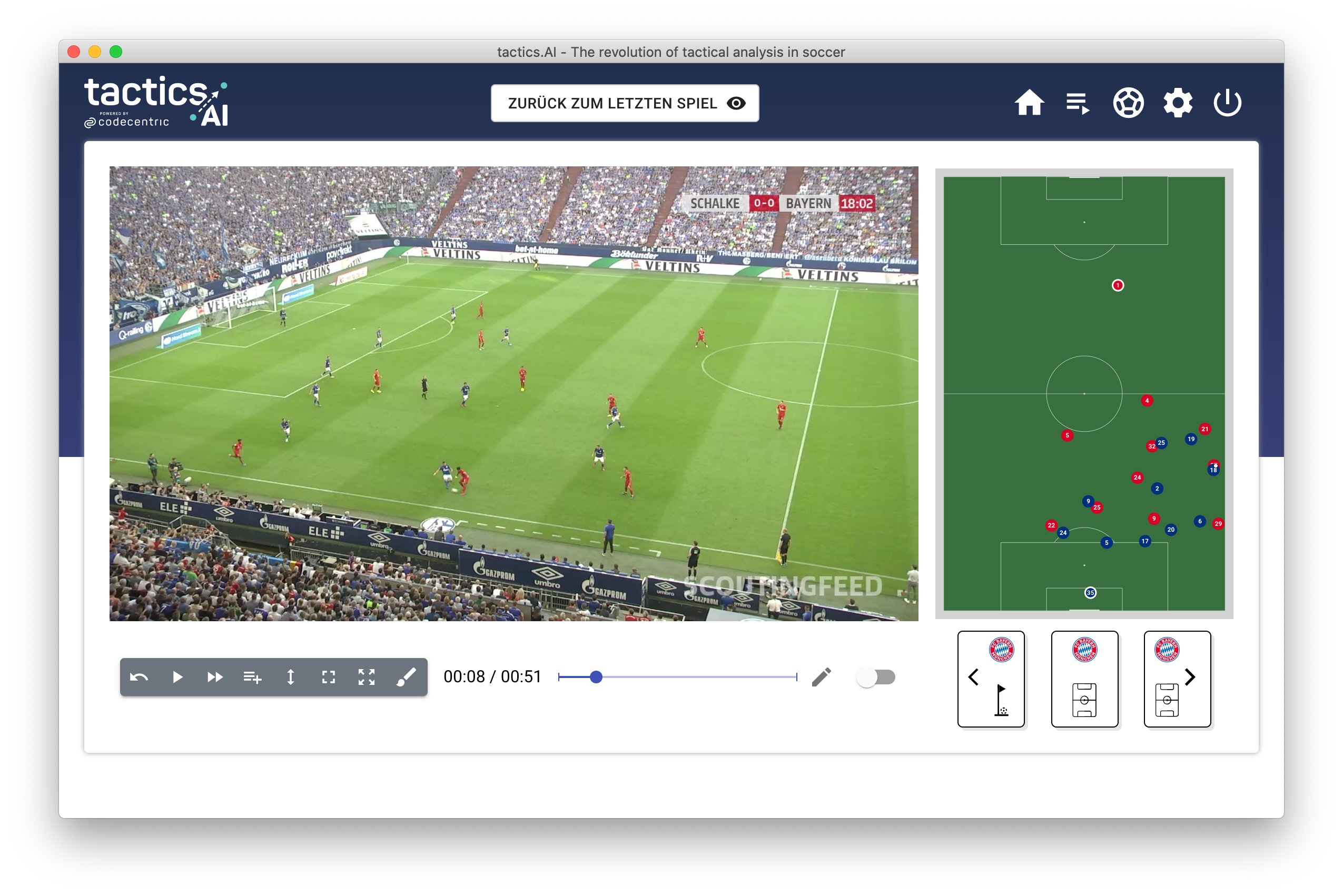 Today, our tactical assistant tactics.ai is a tool that already solves the previous named problems of analysts and coaches. It automatically labels scenes, allows you to filter scenes for specific use cases, lets you create and manage playlists with relevant scenes, integrates a visual tactic board next to the real video footage, and thus enables the coach to directly instruct the team.