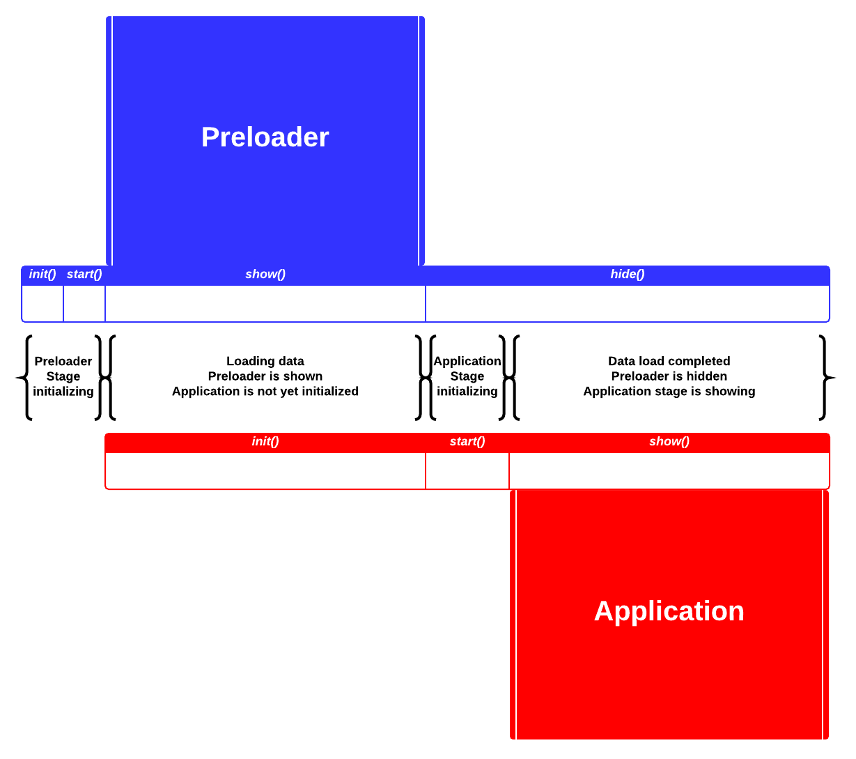It can be easily observed that the “heavy lifting” is moved to #init instead of #start. We will be later back to this, let’s consider how preloader should look like first:
