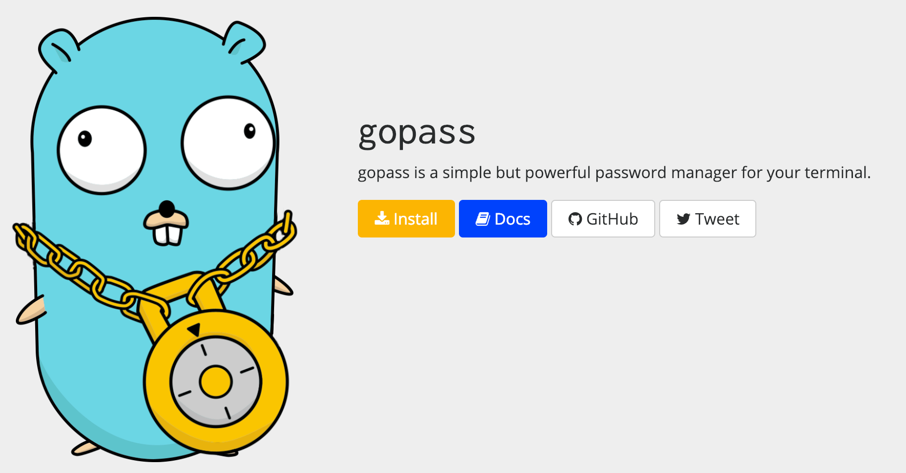The dependencies for Gopass are GPG, Git and a previously generated GPG keypair. Check the dependencies for your environment using these “Pre-Installation Steps” . To install Gopass itself, using go get github.com/gopasspw/gopass is recommended if you have Go available in your PATH. Otherwise, have a look at the “Install” section . Major Linux package managers and Homebrew for MacOS have it available, too. For Debian and Ubuntu please download and install the .deb package yourself because the official Debian repositories contain another package named “gopass”. Of course there are also auto completions for bash, zshell and fish available.