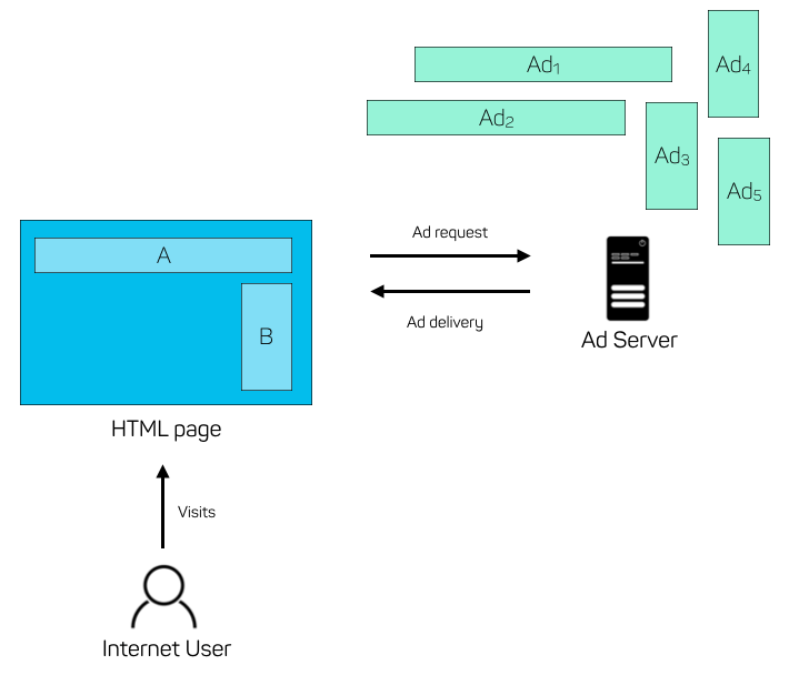 The page contains two div containers A and B. Whenever a user visits our page, we want to place ads in these containers. For example, such an ad could be a banner ad as in the following picture: