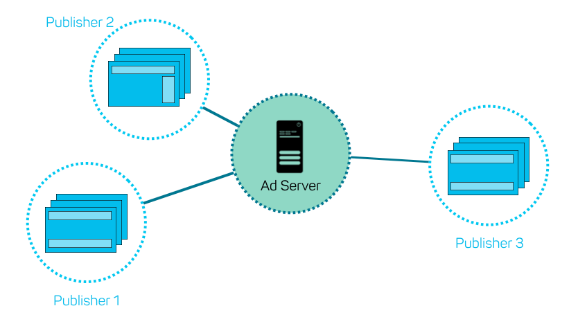 As we have seen in our toy example, there are two major players: the publisher (web page owner) and the advertiser (the person advertising goods and services). Typically a publisher does not host one single web site, but several sites under his domain. A newspaper or online sports magazine might be a good example. Our ad server would also serve a network of publishers. This is illustrated here: