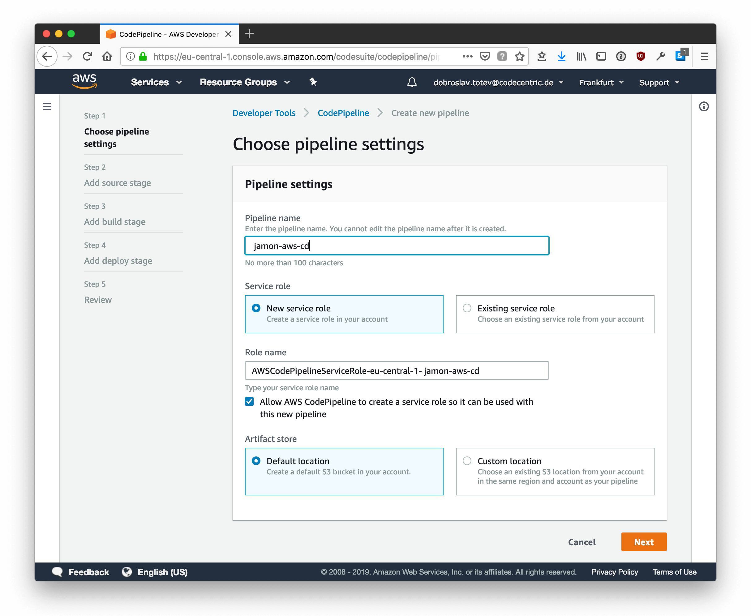 Before celebrating the successful deployment, there are two things missing: continuous development and custom DNS support. As with everything in AWS, there are many ways to accomplish this and they are probably all correct if they work for you. For the purpose of this demo/blog post, I’ve chosen to employ AWS CodePipeline in combination with CloudFront.