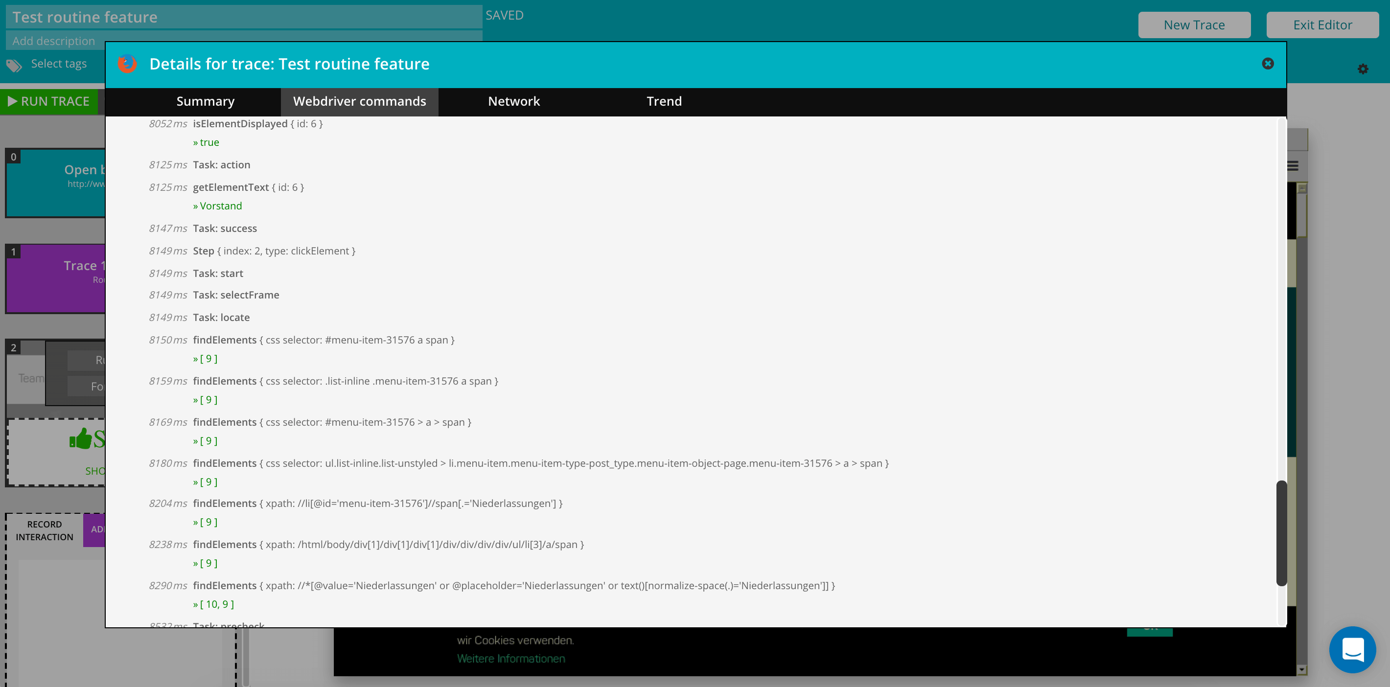 But it also goes down to quite detailed information showing all the Webdriver commands executed during the test run. This might be helpful for some troubleshooting. It should be kept in mind that fixing problems in automated UI tests can either be done in the test itself, but often also by slightly modifying the application under test to make automated test possible, easier and/or more stable.