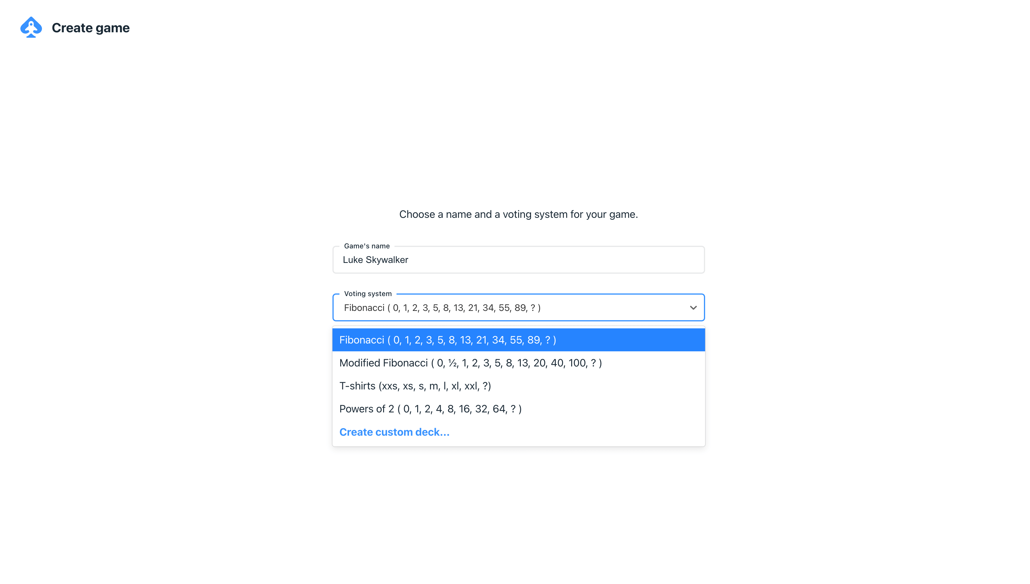 Planning Poker Online: Provides pre-defined card decks but also provides the option to define your own card deck