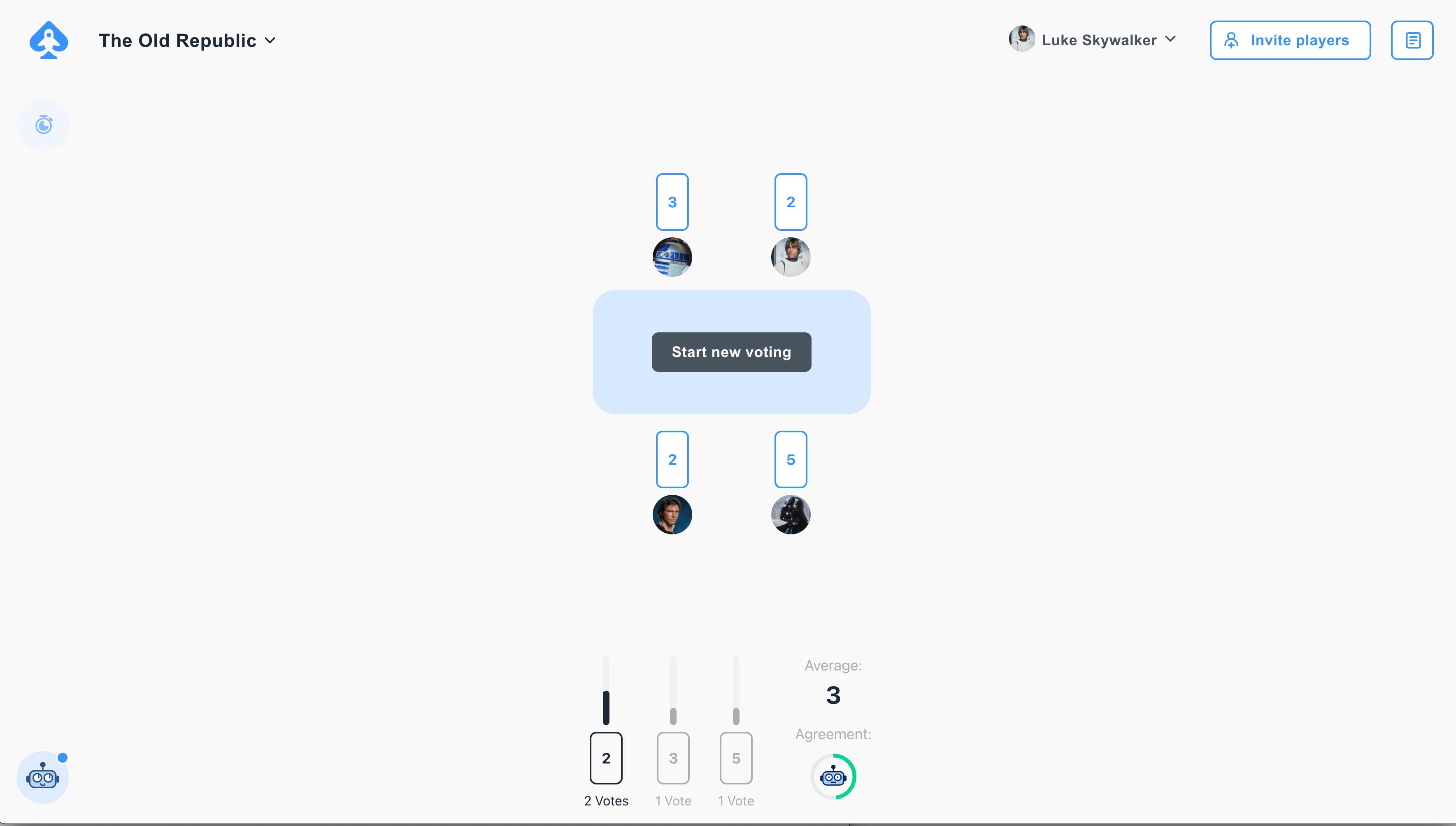 Planning Poker Online: The robot at the bottom shows you how much agreement the average voted size has.