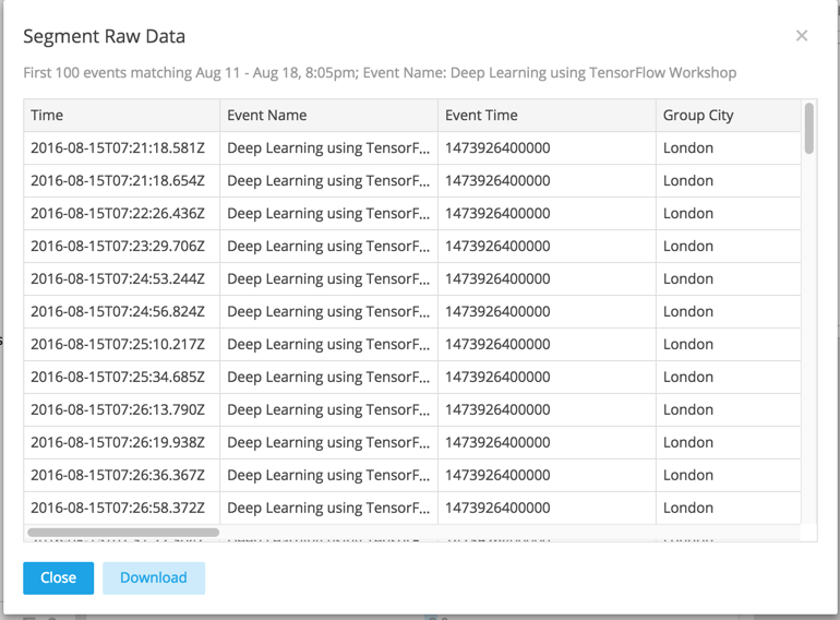 Let’s take a look at the data first. We receive events of the following type from Meetup: