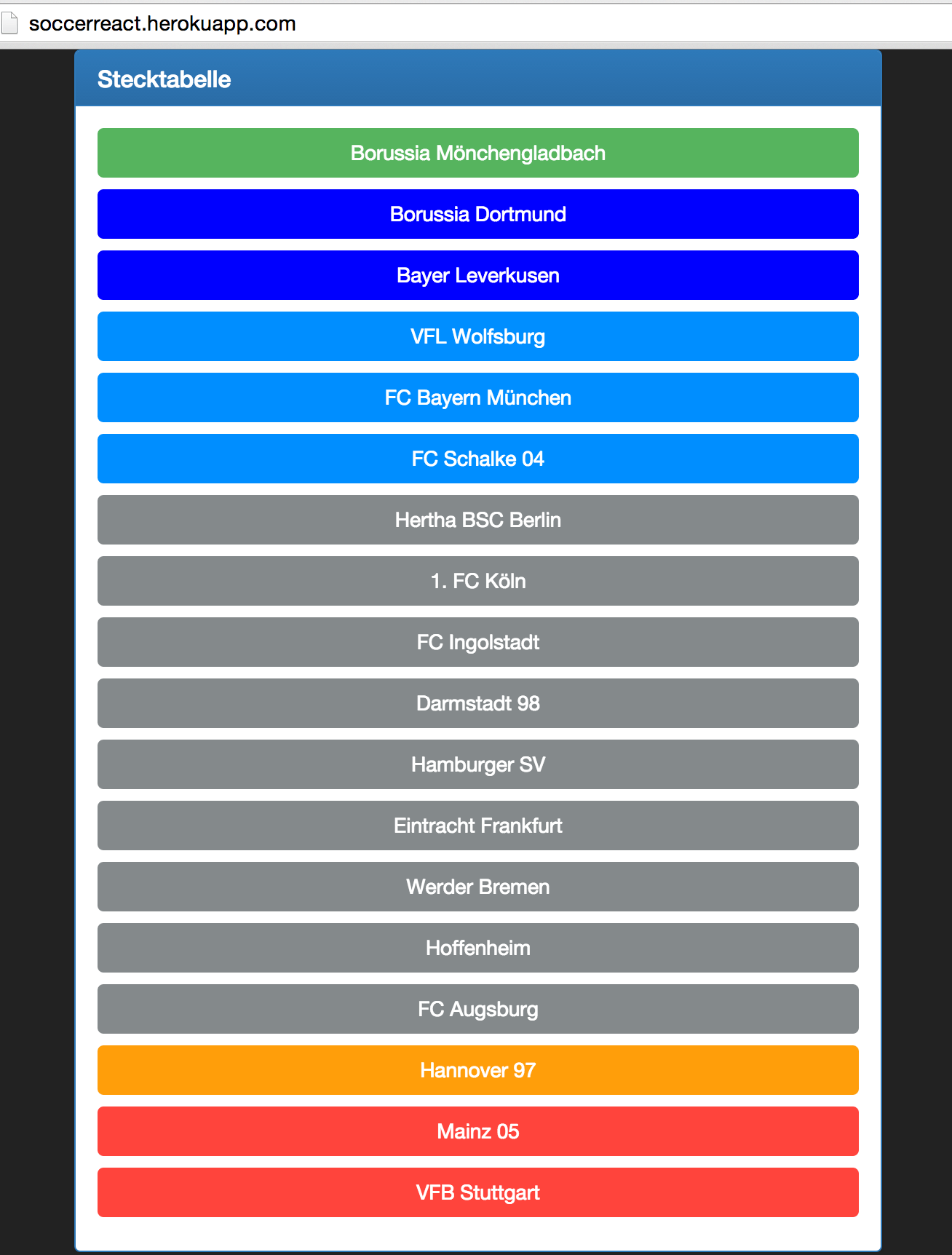 This application can be found here: http://soccerreact.herokuapp.com/ and the sources can be found at GitHub: https://github.com/holgergp/soccerReact