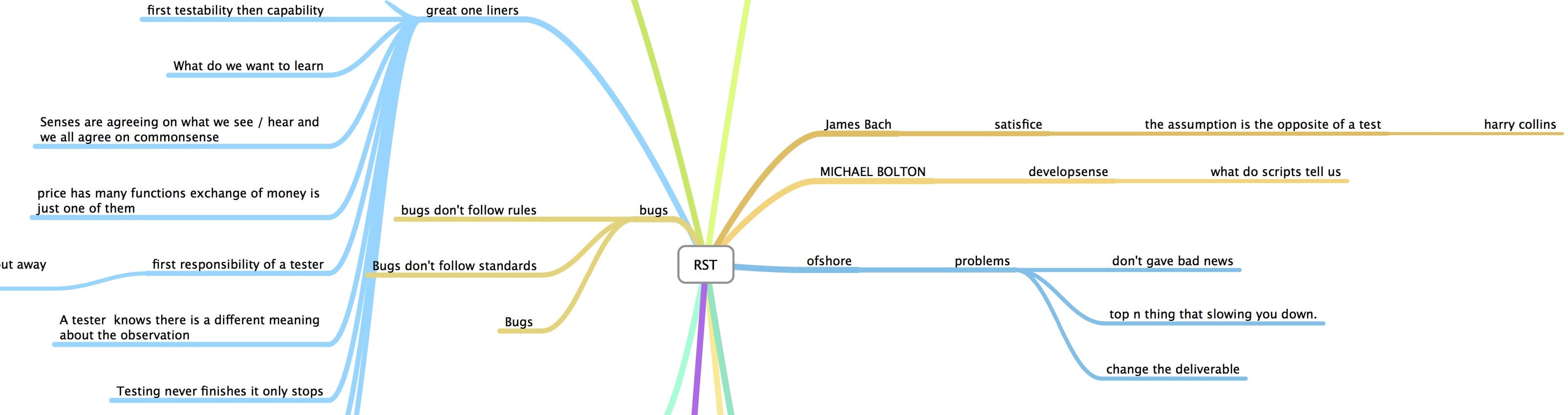 At both courses I created mind maps from the RST By Michael Bolton and from the RST by James Bach . Both the mind maps are unedited.