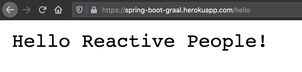 That’s it! After the next successful TravisCI build, we should be able to see our natively compiled and dockerized Spring Boot app running on Heroku at https://spring-boot-graal.herokuapp.com/hello