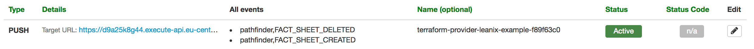 Great! We have a working webhook subscription sending events towards our API hosted in AWS. The only open question is: how did we write the LeanIX Terraform provider?