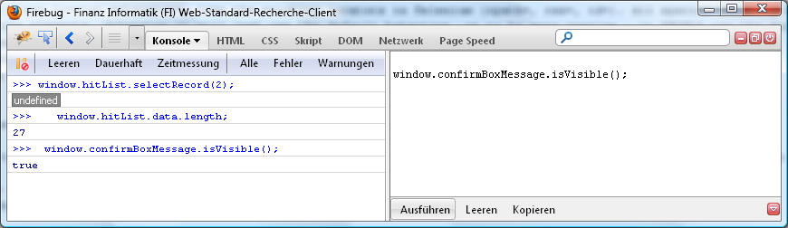 Use Firebug to test your JavaScript-expressions