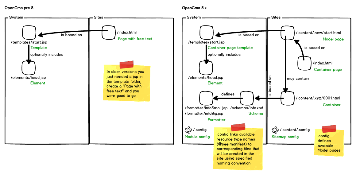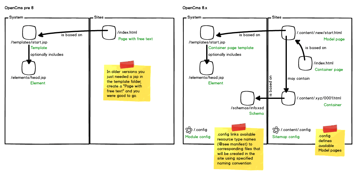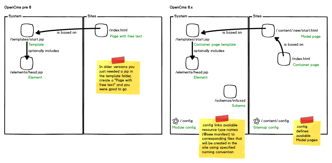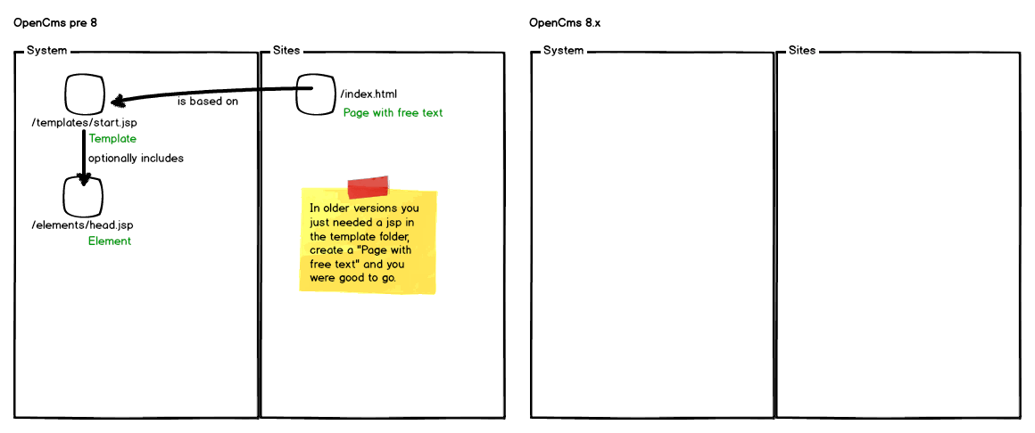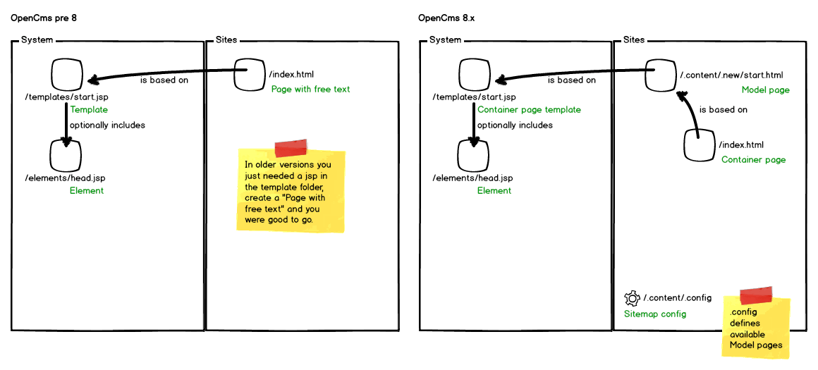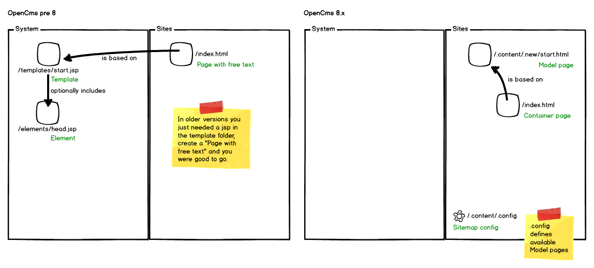OpenCms 8.5.1 got released last week and while test-driving the new edition I thought why not share a little knowledge about how to develop templates for OpenCms 8.x. The concept how it is done (and therefore the way to develop) changed rather significantly and this had been an impediment for days in our last project until we tackled it. This blog post aims to help you understand that new concept.