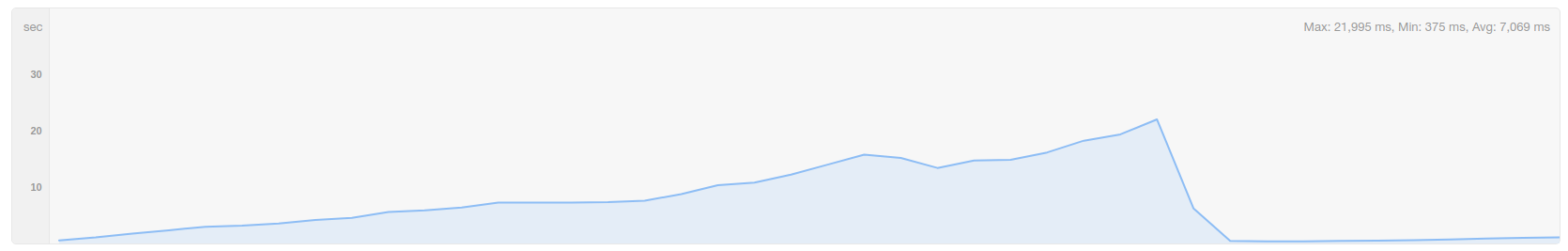 As you can see in the graph above, the response time piled up the more we queried the endpoint.