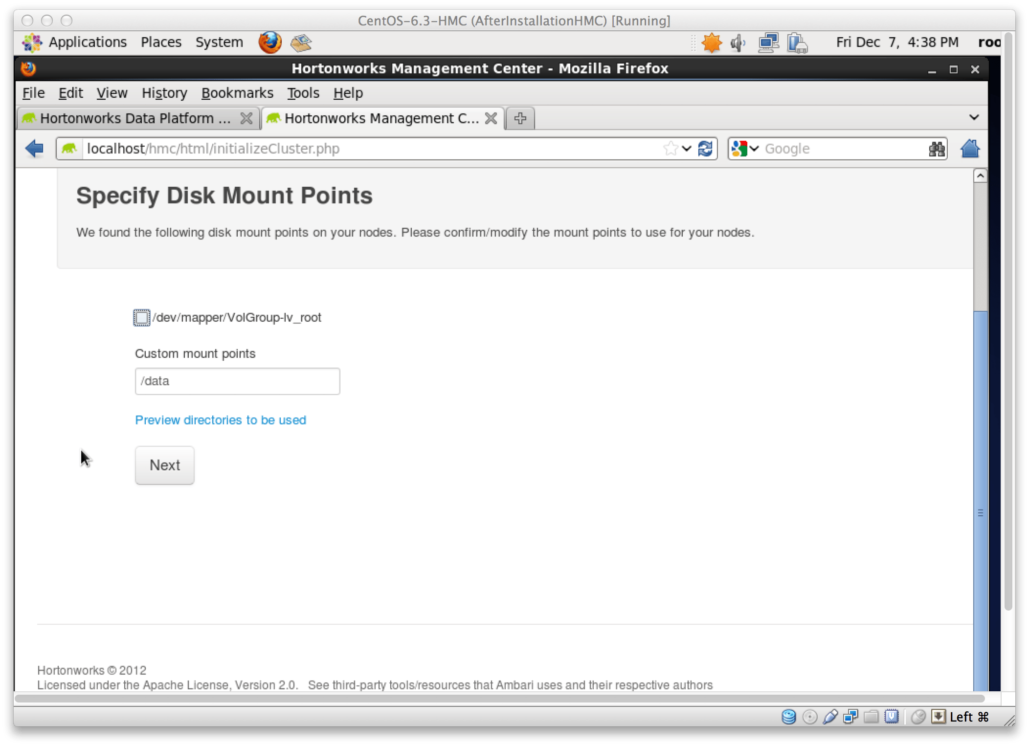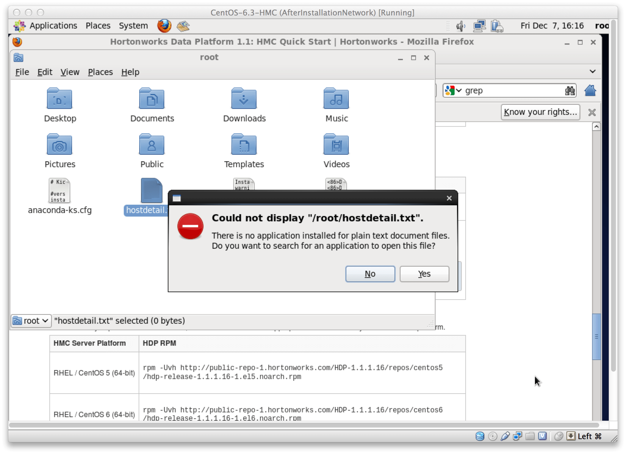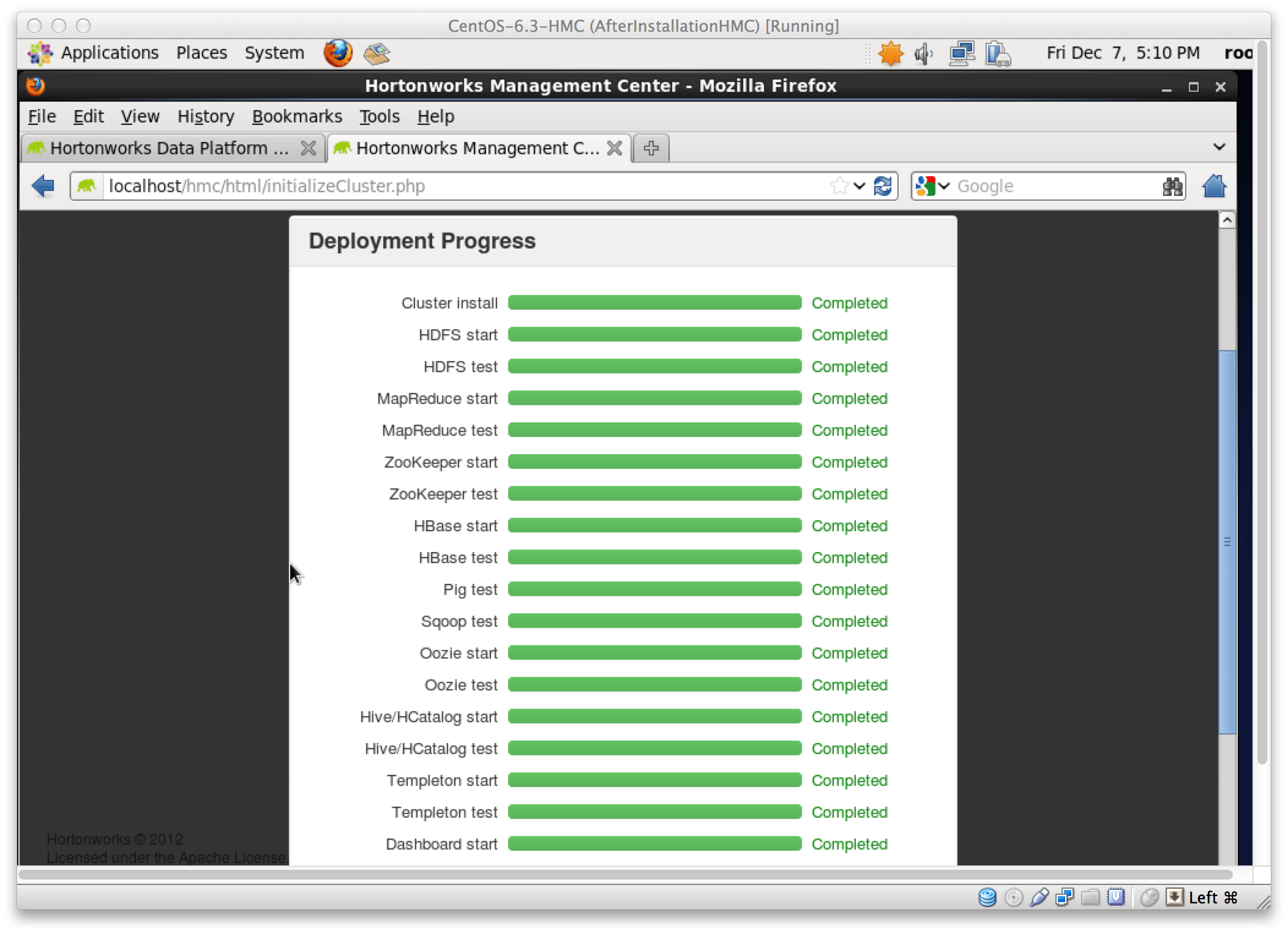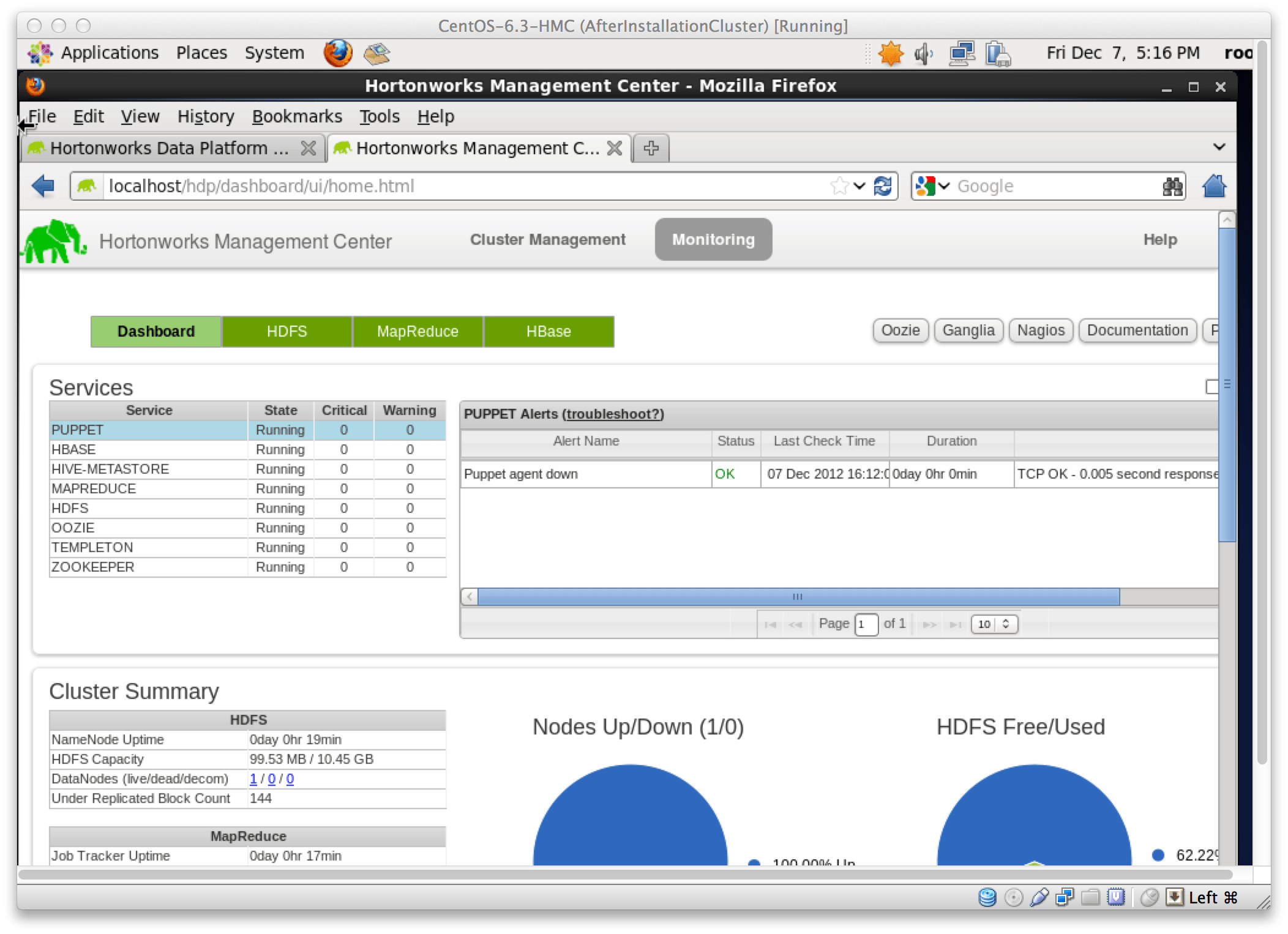 This tutorial is based on this quick start guide. It’s recommended to have a fast internet connection during the HMC setup. Otherwise you maybe run into problems with Puppet timeouts. In this case you can try to pre-install some of the RPMs. Have a look in this thread in the Hortonworks forum.