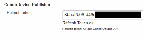 Nach der Installation des CenterDevice-Plugins muss zunächst ein API RefreshToken in der Systemkonfiguration hinterlegt werden.