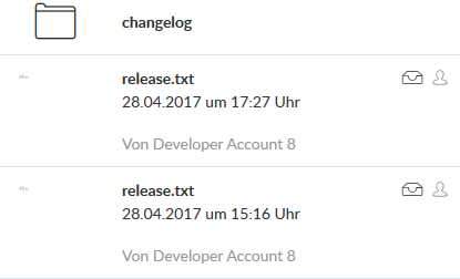 Mit dieser Konfiguration werden bereits 2 Dateien nach CenterDevice hochgeladen, für Changelog.txt wird zudem ein öffentlicher Link erzeugt.