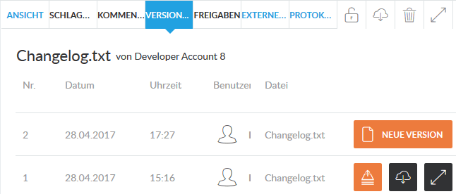 - Upload einzelner Dateien als neue Version bestehender Dateien