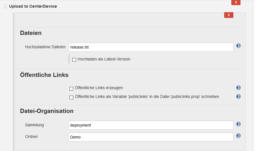 - Upload beliebiger Dateien nach einem Build nach CenterDevice