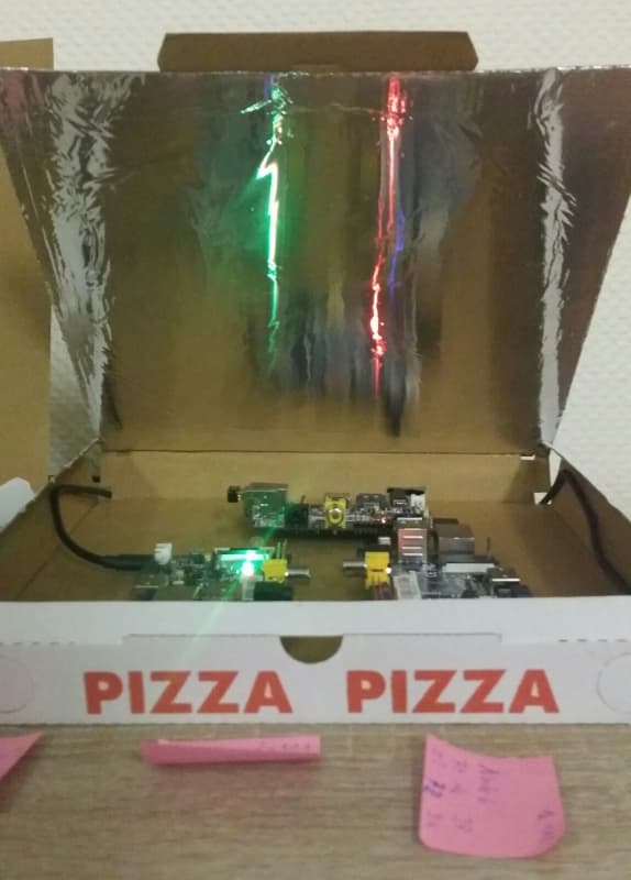 Letztlich gaben der größere Arbeitsspeicher, die Dual-Core CPU und die Möglichkeit bei Bedarf eine SATA-Festplatte zu nutzen den Ausschlag. Es ist jedoch zu beachten, dass die beiden Hardwareplattformen, trotz ihrer optischen Ähnlichkeit, nicht vergleichbar sind. Die GPIO-Leiste ist etwas versetzt und daher für Extension-Boards des Rapsberry in den meisten Fällen unbrauchbar. Zudem ist der Banana Pi einige Millimeter größer und passt daher nicht in die Gehäuse des Raspberry. Wir haben uns daher vorerst zur Installation in einer „Pizzaschachtel“ entschieden.