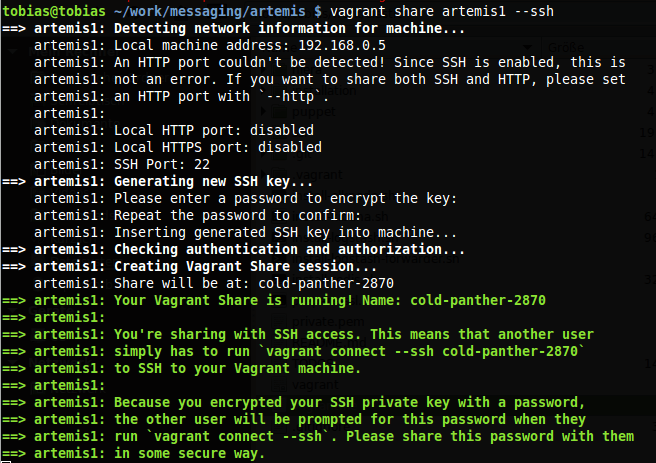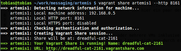 Der gewünschte Kollege benötigt nun ebenfalls eine Vagrant-Installation, und kann sich dann mit dem Kommando: