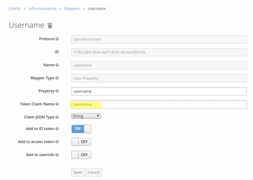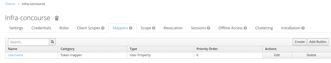 Damit wir in Concourse CI auch den passenden Benutzernamen angezeigt bekommen, definieren wir einen entsprechenden Protocol Mapper vom Typ User Property mit dem Namen username, um den Benutzernamen als claim in das erzeugte IDToken zu generieren.