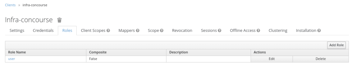 Für das Beispiel haben wir den Benutzer tester angelegt, der die Rolle user für den Client infra-concourse hat.