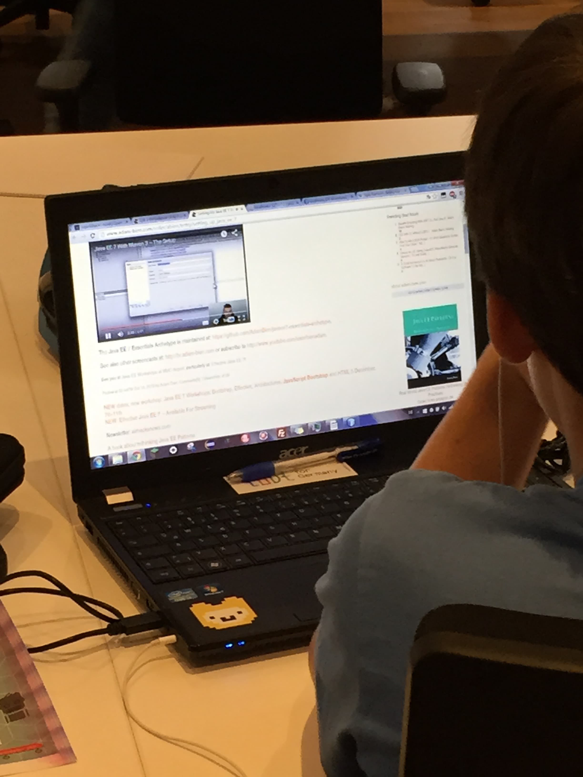 Ich habe das Projekt „Moin Refugees “ rund um Moritz, Noah und Finn betreut. Bei der Projektidee ging es darum eine Applikation zu entwickeln, die Flüchtlinge und Helfer unterstützen und eine bessere Planbarkeit von Flüchtlingen an bestimmten Orten ermöglichen soll. Dazu wurde ein Frontend in Form einer in Swift geschriebenen iOS App und ein auf Java EE 7 basierendes Backend mit einer REST-Schnittstelle entwickelt. Ursprünglich wollten sie das Backend mit einer mySQL-Datenbank und Delphi entwickeln, da Moritz Delphi von seinem Vater gelernt hatte und bereits auf Vorkenntnisse zurückgreifen konnte. Das Einrichten der Infrastruktur kostete uns allerdings so viel Zeit, dass die Gruppe entschieden hat es mit Java EE, NetBeans und Glassfish zu entwickeln. Nach genau zwei Videos von Adam Bien war er in der Lage aus einer Rest API, EJBs und JPA eine Anwendung zu entwickeln. Dass Moritz so schnell gelernt hat, hat mich besonders gefreut, da Moritz bisher auf ein paar Zeilen Java SE aus dem Minecraft Modding zurückgreifen konnte und Java EE für ihn Neuland war.