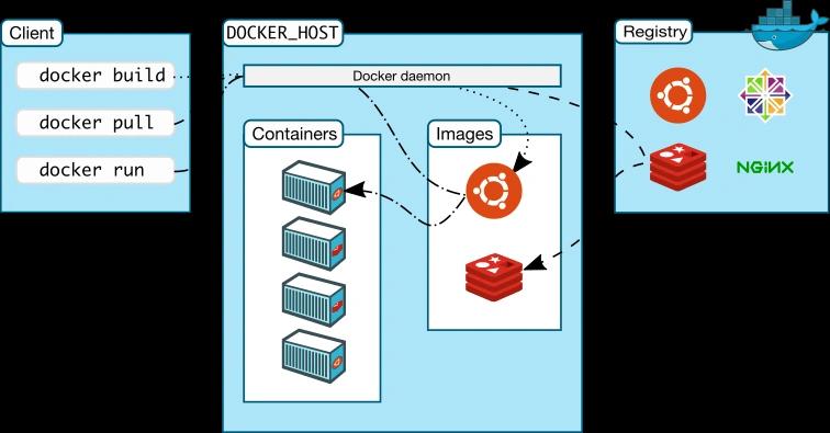 Images are usually stored in image repositories called Docker registries. Dockerhub is a public Docker registry. In order to download images and start containers you need to have a Docker host. The Docker host is a Linux machine which runs the Docker daemon (a daemon is a background process that is always running, waiting for work to be done).