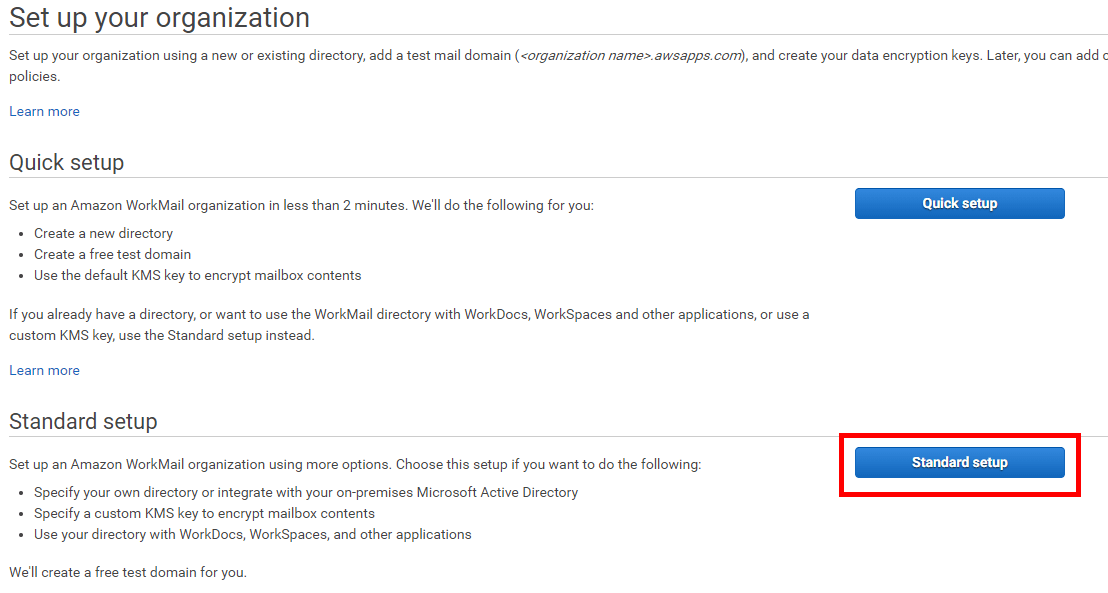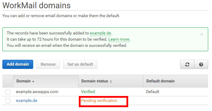 Nach einiger Zeit wird die Bereitstellung des Workmail-Dienstes abgeschlossen.