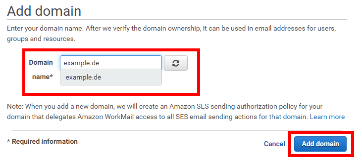wählen Sie Ihre erstellte Domain aus und klicken Sie auf „Add Domain„.